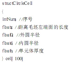 分析數控車床加工的特點: 數控車床的毛坯通常為棒料,為回轉體零件,而且刀具做的只是X方向和Z方向上的二維運動. 因此在本系統的仿真算法中,首先將毛坯進行細分為單位厚度的小圓柱單元,小圓柱單元的厚度根據仿真所需的精度和顯示效果來決定[ 4]小圓柱單元的具體的數據結構為: