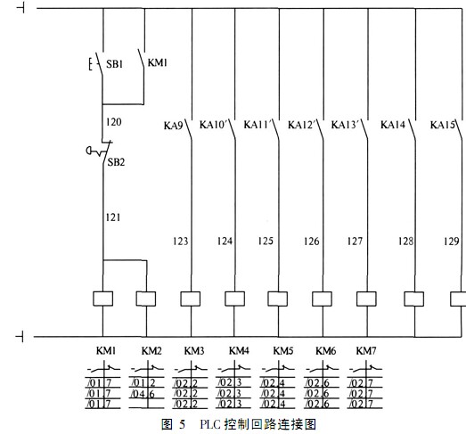 西門子 840D數(shù)控系統(tǒng)的 PLC設(shè)計是采用 STEP7語言嵌入 840D中, STEP7編程軟件的結(jié)構(gòu)秉承了西門子硬件的設(shè)計思想,仍然采用模塊化結(jié)構(gòu)[ 6], PLC控制回路連接圖如圖 5所示.