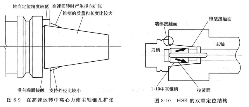 僅僅靠大錐度聯(lián)系,刀具與主軸的銜接剛性相對較低,當(dāng)主軸轉(zhuǎn)速超過10000r/miH時,由