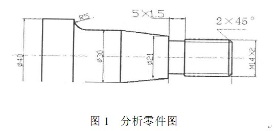 該零件是具有外螺紋的軸類零件,如圖 1 所示, 材料為 45號鋼,零件最大外徑是f40mm, 則毛坯可選 f45mm 的棒料,機(jī)床則選數(shù)控車床。