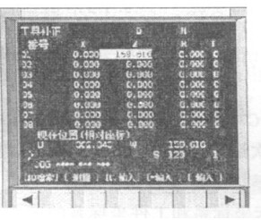 ( 1) 將 02 號外切槽刀沿- Z 靠近工件右端面, 此時由于01號刀已經(jīng)定位 Z軸工件坐標(biāo)系,所以 02 號刀不能再次切削右端面,應(yīng)采用/ 碰刀法0。用手輪方式將 02 號刀具沿- Z 方向靠近右端面,當(dāng)?shù)毒唠x工件非常近時將手輪的進(jìn)給倍率調(diào)至最小。當(dāng)在進(jìn)給過程中看到有切屑飛出時, 停止- Z 方向的進(jìn)給,沿+ X 軸將刀退出,此時 Z 軸不能移動, 點(diǎn)擊MDI 鍵盤上的offset setting鍵, 進(jìn)入刀具補(bǔ)償界面,按 CRT 顯示器軟鍵所對應(yīng)的形狀, 在 02 號刀 Z軸中輸入 Z0, 點(diǎn)擊控制面板上的刀具測量0 ,再點(diǎn)擊軟鍵對應(yīng)的/ 測量0 , 02號刀具 Z 軸對刀完成,此時 Z 軸可隨意移動。